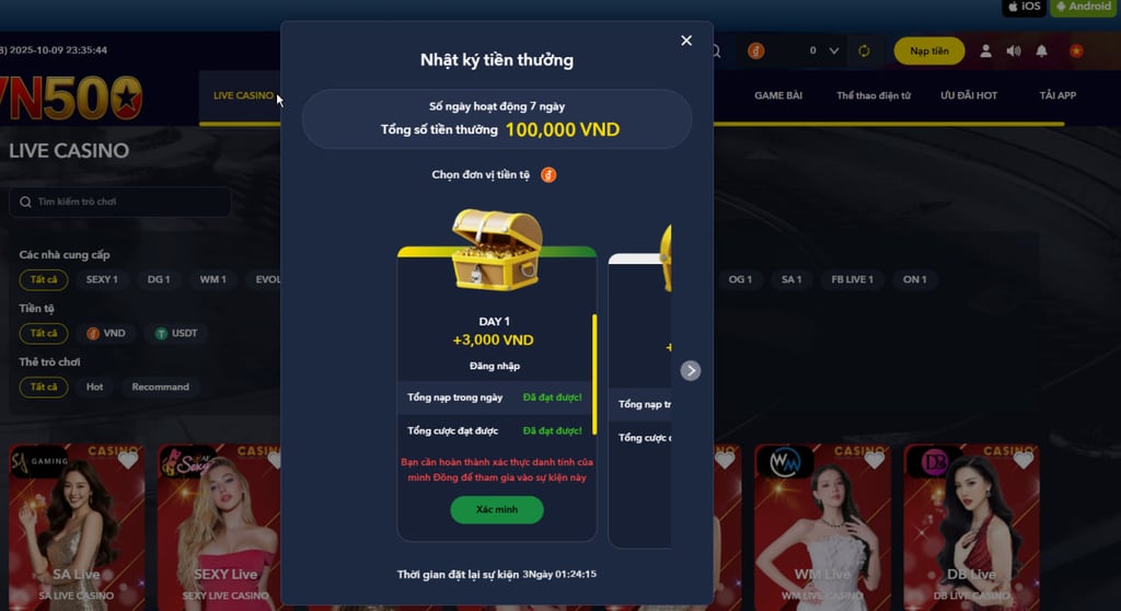 Đăng ký VN500 chơi game nhận ngay thưởng