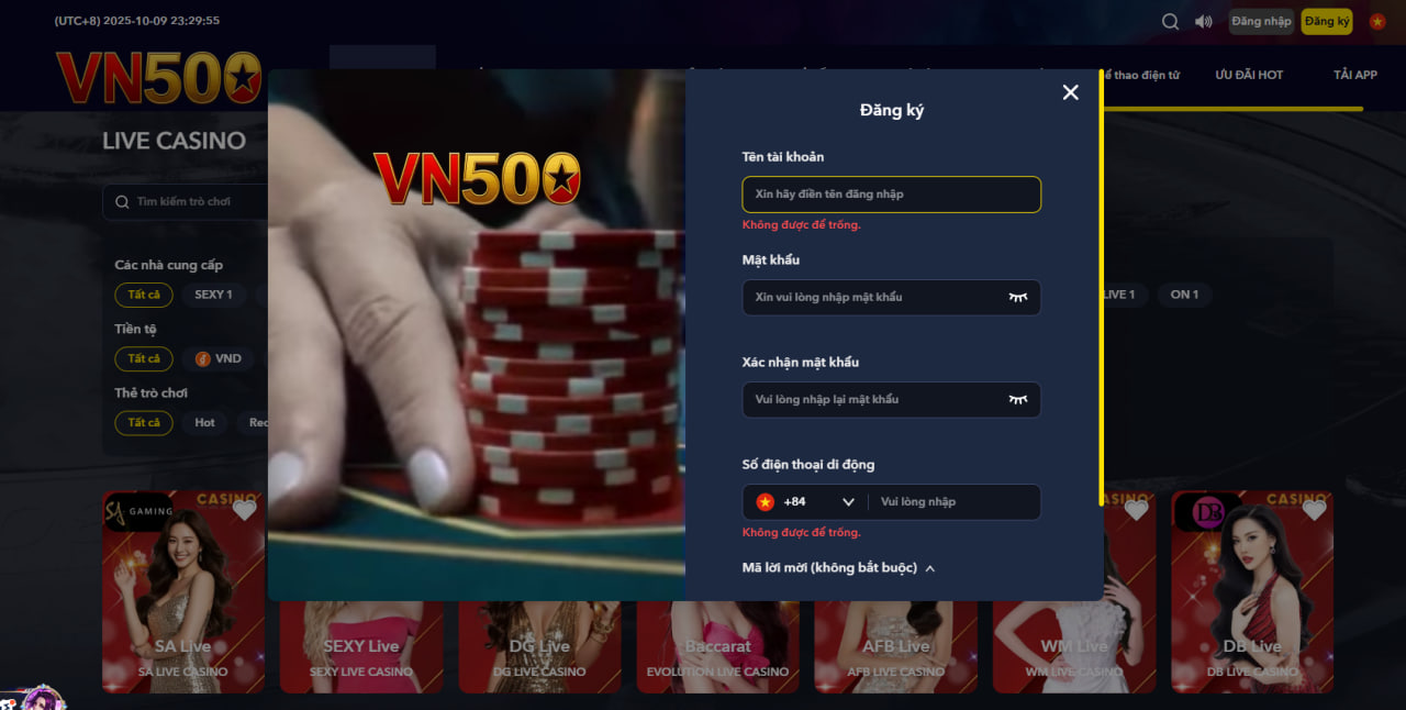 VN500 là một nhà cái hiện đang có sức ảnh hưởng khá mạnh mẽ trên thị trường. Sân chơi này được xem là một điểm đến của rất nhiều game thủ. Một trong những thao tác mà bạn cần thực hiện được đó là đăng ký VN500. Cùng tìm hiểu ngay các bước đăng ký đơn giản qua bài viết bên dưới đây nhé!